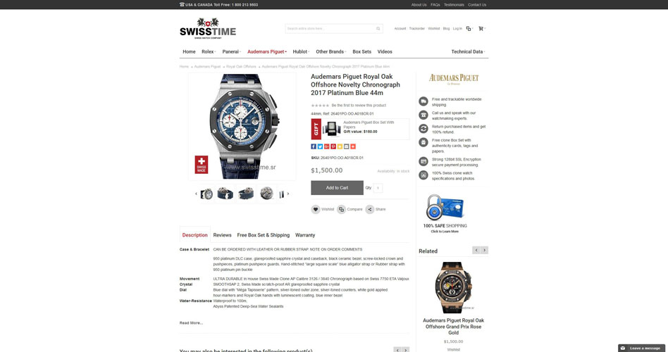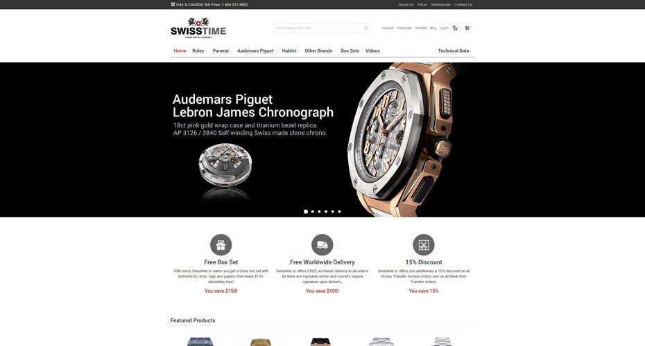 Swisstime.sr is an online Swiss replica watch store known for its excellent customer support. A customer can reach the site through phone, chat, and e-mail. Expect to receive prompt replies from the site’s customer service staff. If you purchase from this online shop they will even throw in free shipping, yes they would deliver the ordered items right at your doorstep free of charge. They also offer a branded watch Box set that includes full paper work , serial card, watch booklets and tags. Swisstime.is is a Swiss watch company that manufactures Swiss replica watches like Rolex, Panerai, Hublot, Audemars Piguet etc. These are high quality watches but at the same time budget friendly. According to customer reviews their replica watches are top Grade 1 quality and so a safe purchase is guaranteed with this dealer.